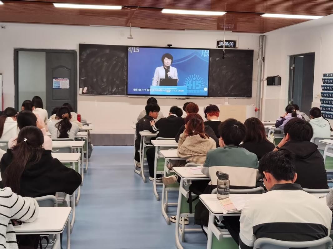 4月15日,2025级电子商务专业全体学生集中观看全国高校“千万师生同上一堂国家安全教育课”。课程围绕政治安全、经济安全、网络安全、生态安全等重点领域,结合真实案例,深入浅出地讲解了当前国家安全面临的形势与挑战。同学们认真聆听、积极思考,深刻认识到国家安全与日常生活的紧密联系。