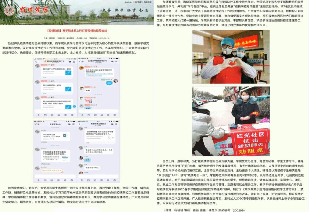 张锐锐严格落实上级部署,通过班级群及电话等方式,及时向学生传达学习习近平总书记关于新型冠状病毒感染的肺炎疫情防控工作重要指示精神、学校疫情防控工作部署和要求,宣传新型冠状病毒防控科普知识,先后撰写了《商学院全员上阵打好疫情防控阻击战》、《战“疫”路上,你我同行!》等文章,确保信息传达到全体学生,引导学生强化防控意识,坚定打赢疫情防控阻击战的信心。