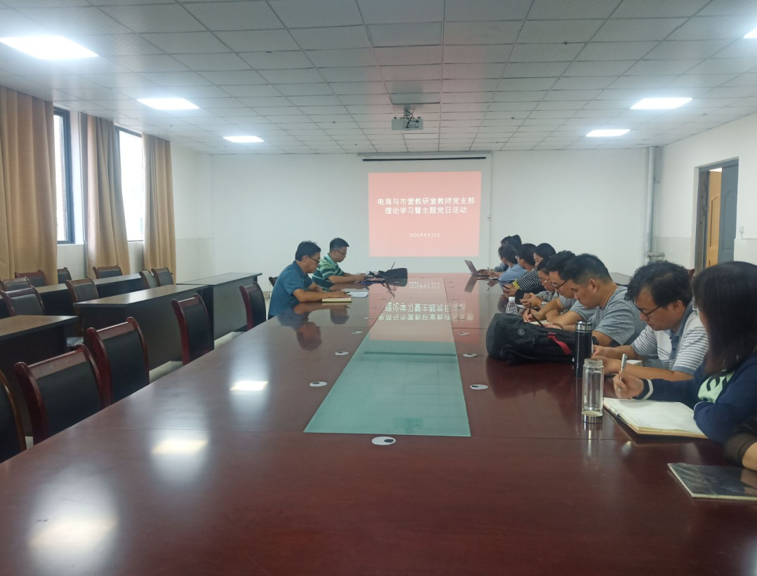9月23日下午,商学院电商与市营教研室教师党支部在实训楼B513会议室开展支部理论学习暨支部党日活动。会议由支部书记刘红军主持,商学院党总支书记岳尧及电商与市营教研室教师党支部全体党员教师参加了会议。