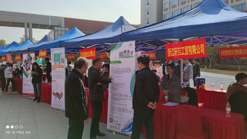 10月17日,实训楼前广场一片热闹非凡的景象,招就处、商学院共同举办的宿州学院经管类2021届毕业生供需双选会在紧张有序地进行着。