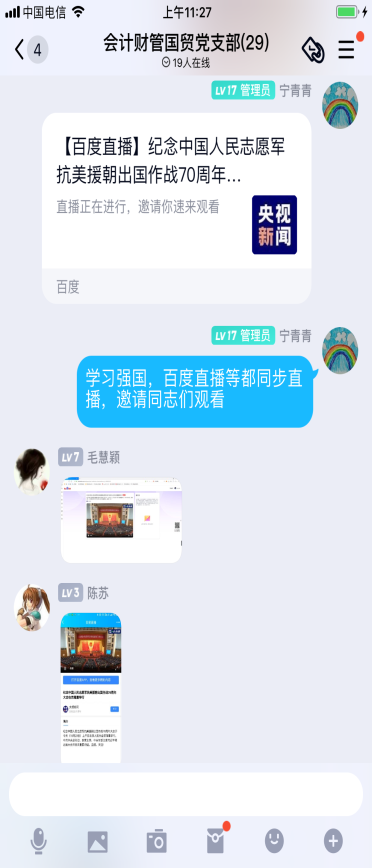 10月23日上午10时,纪念中国人民志愿军抗美援朝出国作战70周年大会在北京人民大会堂隆重举行。商学院会计财管与国贸教研室教师党支部认真组织党员教师线上收听收看此次直播,开展了一次深刻的爱国主义主题党日活动。