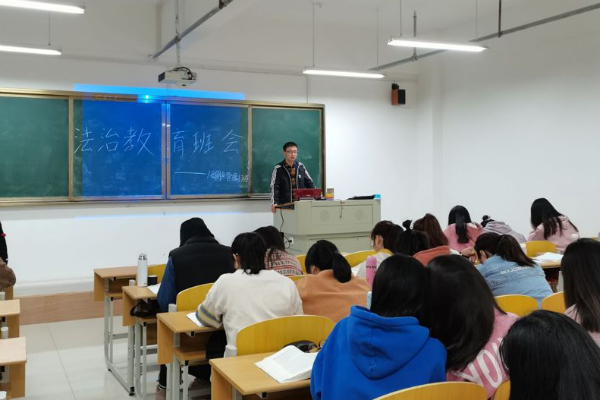 为进一步加强班级学生法治教育,培养和强化学生的法治观念,提高班级学生学法、知法、守法的意识和能力,18财务管理1班于11月17日上午9:30在实训楼B206教室开展大学生法治教育主题班会,全班同学参加了会议。