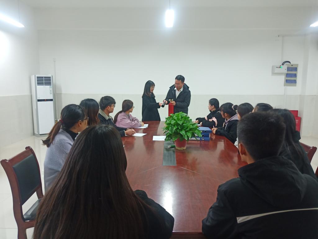 2020年9月9日下午3点,商学院实习实训中心在实训楼B409开展了以“消防安全及消防设施操作”为主题的消防安全培训活动。活动邀请18市场营销班朱睿同学作为主讲人,商学院实训中心主任、实验员及实训中心助管参加了本次活动。