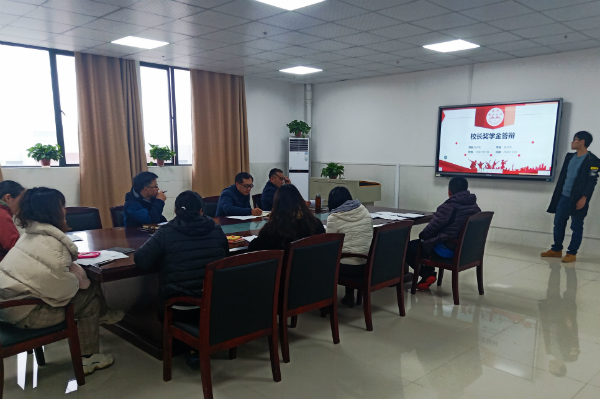 12月10日,商学院在实训楼B511会议室召开了2020年校长奖学金领导小组评审会议。会议由商学院党委副书记周亚主持,党委书记岳尧、副院长刘红军、全体辅导员(班主任)以及校长奖学金候选学生参加了会议。