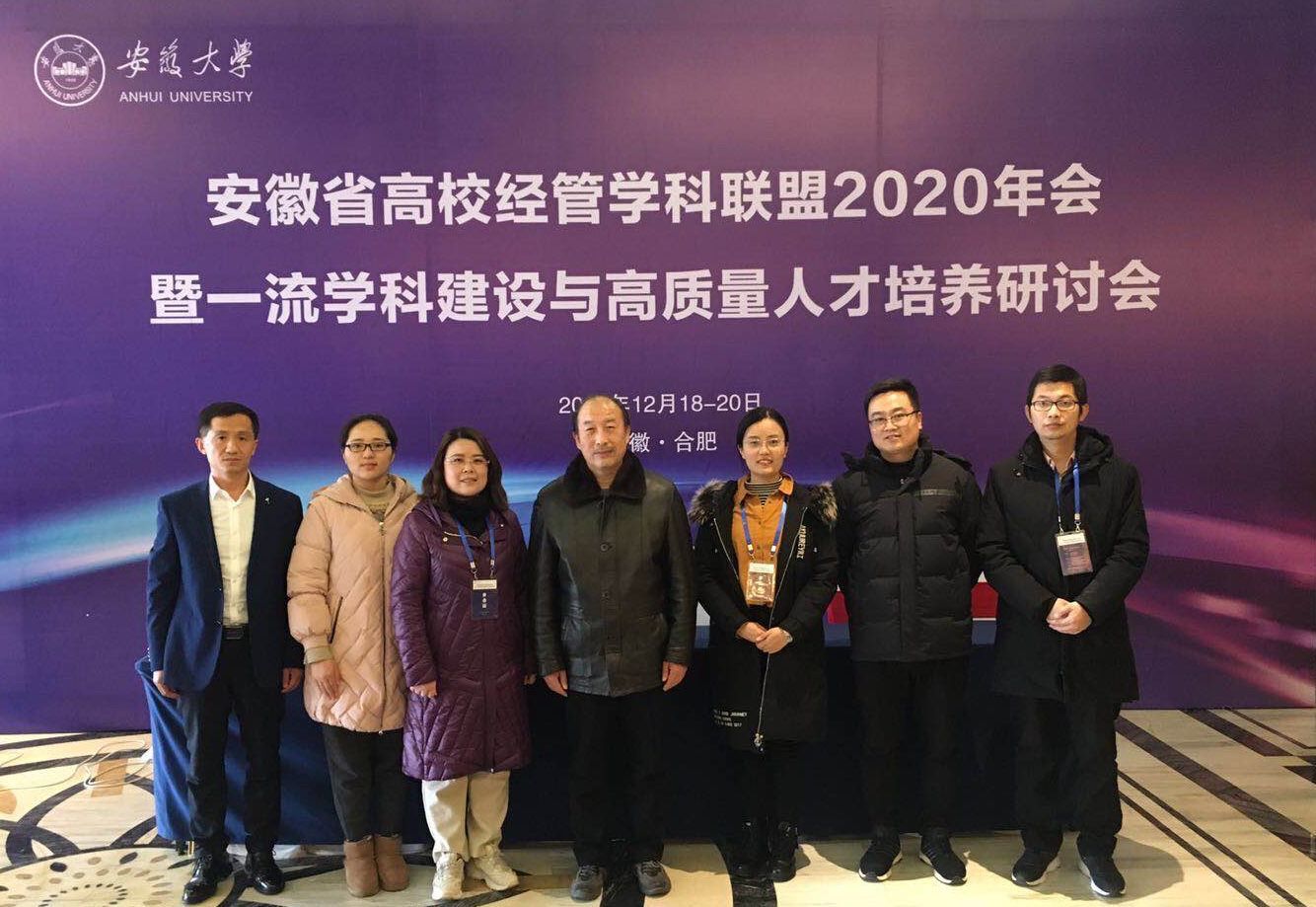 2020年12月19日—20日,安徽省高校经管学科联盟2020年年会暨一流学科建设与高质量人才培养研讨会在合肥举办。此次年会由安徽省经管学科联盟与安徽大学主办,安徽大学经济学院与商学院承办。商学院徐公伟、宁青青、李保军、胡发刚、胡良益、刘凡、任琳等7位老师应邀参会。