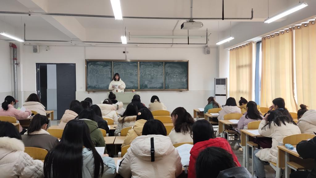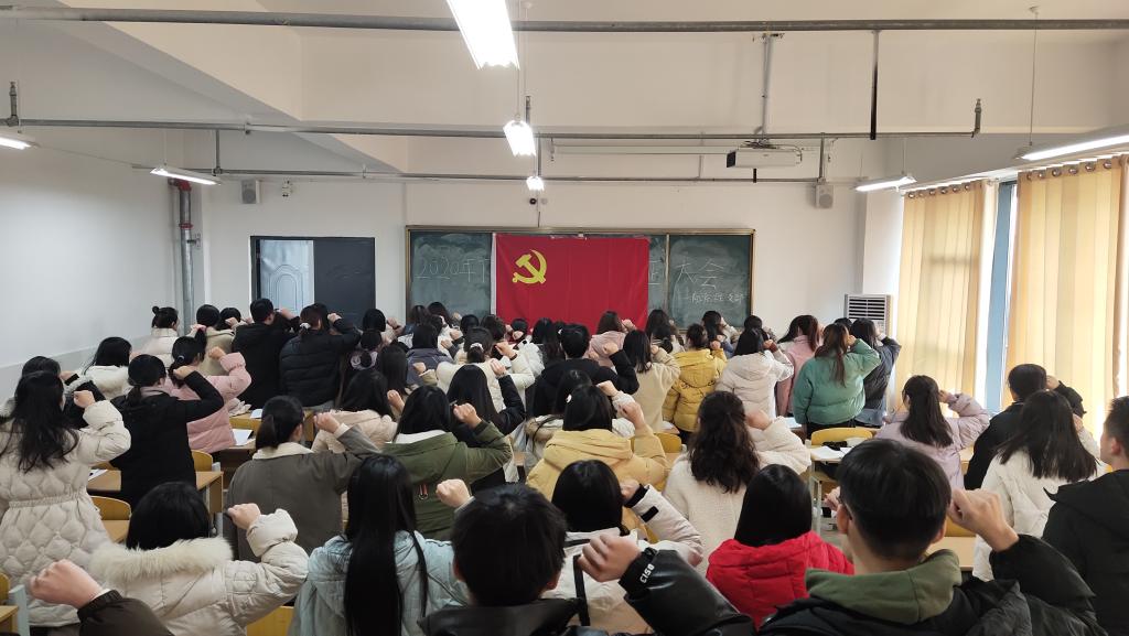 12月21日中午,商学院学生一、二、三、四党支部在实训楼B楼分别召开2020年下半年党员发展转正大会。商学院全体学生党员参加大会,大会由四位学生党支部书记分别主持。
