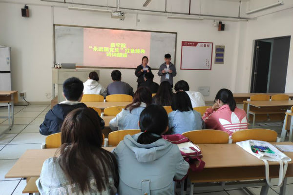 为了庆祝中国共产党成立100周年,教育引导师生继承优良革命传统,传承红色基因,听党话、跟党走。2021年4月19日中午,商学院举办了“永远跟党走”红色经典诗词朗诵比赛。