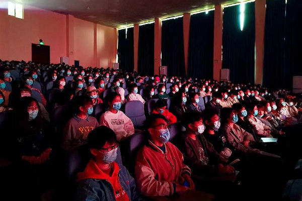 下午13:40,同学们佩戴口罩,有序进入了大学生活动中心。在相关负责人的组织和带领下观看了党史思政大课。课程主要讲述了中国共产党成立初期浴血奋战的拼搏历程,在党的正确领导下,中国日益强盛,逐渐站在世界舞台的中央。尤其是在疫情防控、脱贫攻坚和污染防治等关键领域,中国取得了举世瞩目的成绩。
