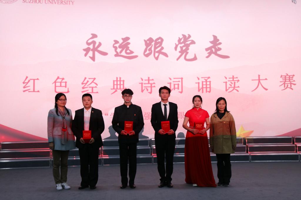 4月27日下午,宿州学院“永远跟党走”红色经典诗词诵读大赛在报告厅隆重举行,商学院组织学生支部书记及学生党员积极参赛,取得二等奖的好成绩。