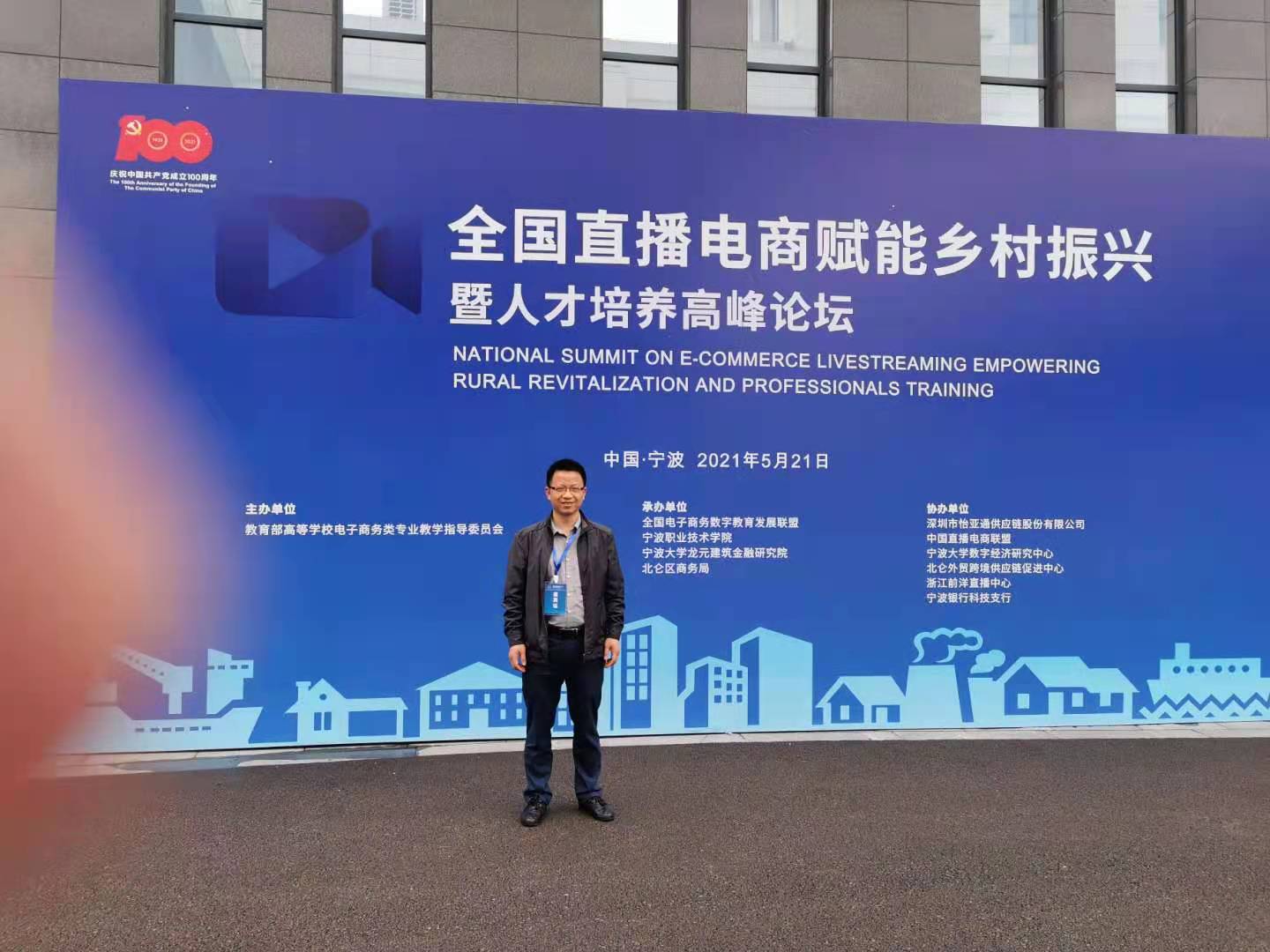 2021年5月20—22日,由教育部电子商务类专业教学指导委员会主办的全国直播电商赋能乡村振兴暨人才培养高峰论坛在宁波成功举行。全国近50所高校,20余家相关企业的100余名专家学者和企业高管出席了本次论坛,共同探讨直播电商如何赋能乡村振兴。商学院副院长刘红军教授应邀参加本次论坛。