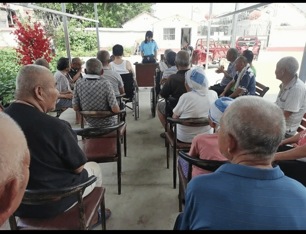 (图为团队成员为颐康园老年公寓的老爷爷、老奶奶们开展四史宣讲)