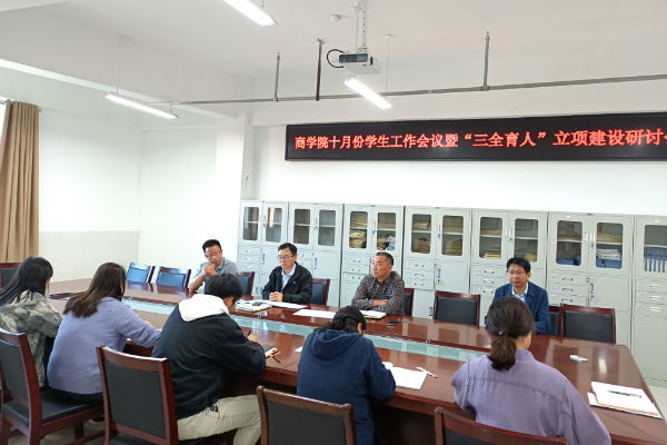 10月13日下午,商学院在实训楼B503会议室召开十月份学生工作会议暨“三全育人”立项建设研讨会,会议由商学院党委副书记周亚主持,党委书记肖良、副院长刘红军、组织员黄凯和全体辅导员(班主任)参加了会议。