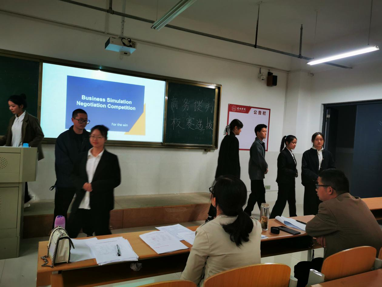 2021年10月15日,由教务处主办、商学院承办的“2021年安徽省大学生国际商务模拟谈判大赛校内赛”在商学院B107教室圆满结束。本次校内赛吸引了来自全校的50多名学生、9支队伍参加了此次竞赛。校内赛分为两个阶段开展,在第一阶段中所有参赛选手均通过了个人知识赛、并在“学堂在线”平台参加了《国际商务谈判与礼仪》课程的学习,第二阶段则包括了现场团队展示、案例分析和面对面谈判环节。商学院的胡良益、陈相琴和许晓芳三位评委老师出席了此次现场选拔赛。