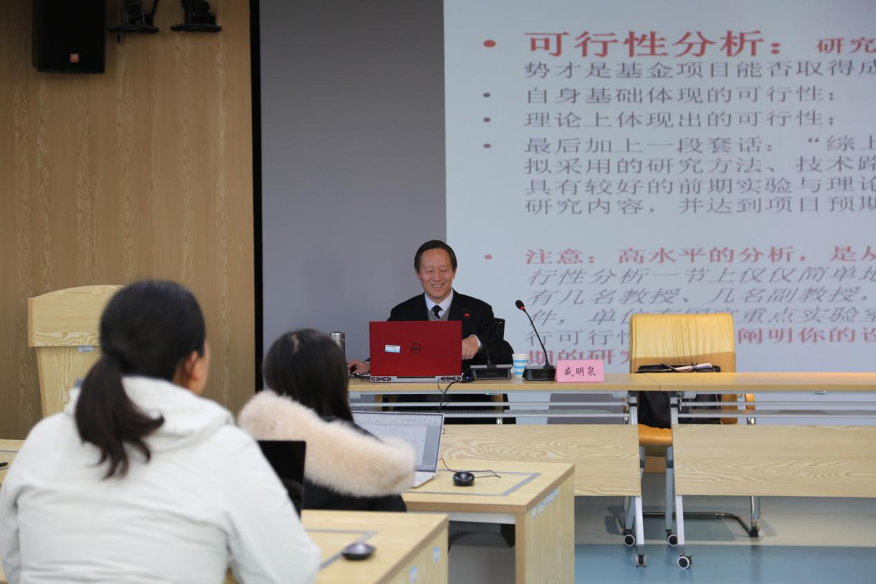 盛明泉首先从国家社会科学基金申报的要求、课题选择、基金评审过程等方面进行了详细的讲解和分析,并重点就课题申报的技巧、申报书的填写及注意事项等进行了详细的分析和解读。