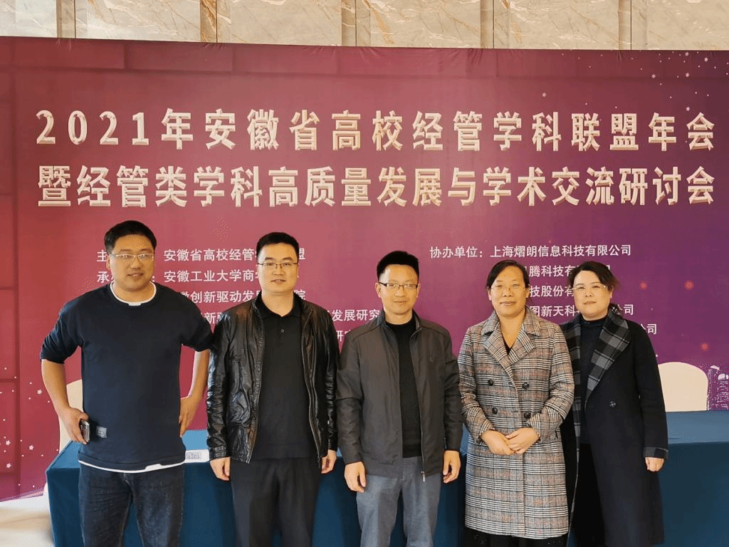 2021年12月3日-5日,2021年安徽省高校经管学科联盟年会暨经管学科高质量发展与学术交流研讨会在马鞍山召开。会议由安徽工业大学商学院承办。我校商学院党委副书记、副院长刘红军(临时负责)、副院长周书灵、副院长宁青青、科研秘书陈同峰、实习实训中心主任胡发刚5位老师应邀参会。
