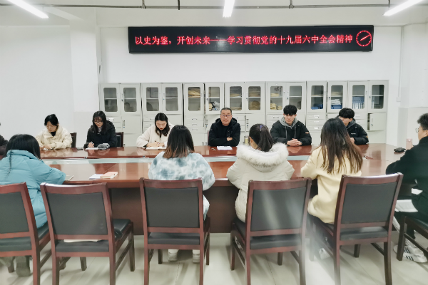 为深入学习贯彻党的十九届六中全会精神,进一步引导学生认真领会全会精神的丰富内涵与核心理念,深化党支部党员党性修养,筑牢信仰基石,12月20日商学院党委副书记周亚在实训楼B503党员活动室为学生支部开展了“以史为鉴,开创未来——学习贯彻党的十九届六中全会精神”专题党课学习活动,商学院财务管理学生专业党支部学生党员参加了此次党课。