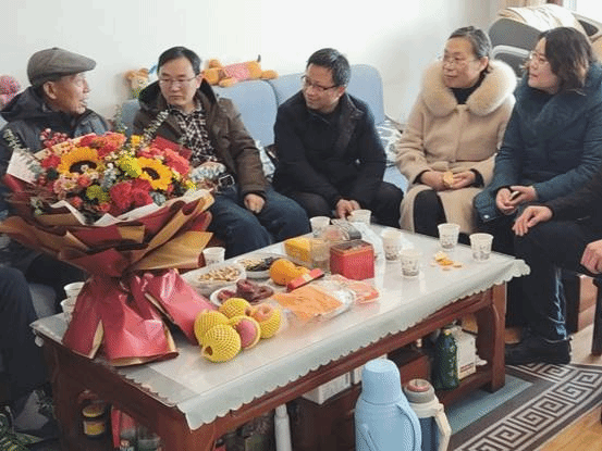 在虎年春节到来之际,2022年1月15日上午,商学院党委书记肖良带领学院党政领导班子一行六人走访慰问我院退休老干部、老党员钱福新同志,为钱老送上了鲜花、带去了组织的关怀和温暖,提前祝福他新春快乐、身体健康、万事吉祥。