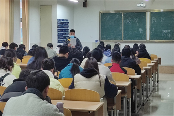 各班辅导员首先传达了全省疫情防控工作电视电话会议及全省教育系统疫情防控工作视频会议的精神,并对近期疫情防控工作进行具体布置。一是全体同学继续严格遵守“非必要不出校”的要求;二是坚持戴口罩、少聚集、勤洗手、保持社交距离,积极配合核酸检测工作,不信谣、不传谣;三是认真做好晨午晚检和个人日常健康监测;四是严禁出现翻越围墙等违纪行为。
