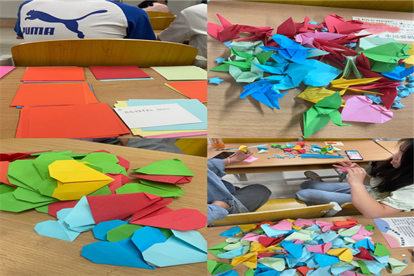 首先,每人手持一张精美的贺卡,大家通过“情系贺卡”的方式,用文字勇敢地表达了对母亲的知心话、温馨的祝福与感恩之情。然后,由文艺委员和组织委员有序地向大家分发等量的彩纸和星星条,提前分好的组员坐在一起,在规定的20分钟时间内折出自己所会的形状,同学们用彩纸折出康乃馨、千纸鹤、爱心、百合、玫瑰等作品,每一个折纸作品都充满着故事,在这样一个充满爱意的氛围,同学们纷纷拿出手机,向自己的母亲送了最真挚的节日祝福并表达了自己深情的思念。在折纸的过程中,同学们热情高涨,折纸能力不分上下,每一组成员都加快手速,勇夺第一。最后,经过争分夺秒的激战,冠军小组应运而生,张可,石晓宇,殷浩浩,梅驰一组勇夺“折纸最佳队伍”称号!