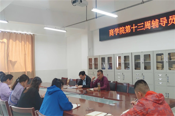 5月16日上午,商学院在实训楼B503会议室召开第十三周辅导员工作例会。商学院党委书记肖良和全体辅导员(班主任)参加了会议,党委副书记周亚主持会议。
