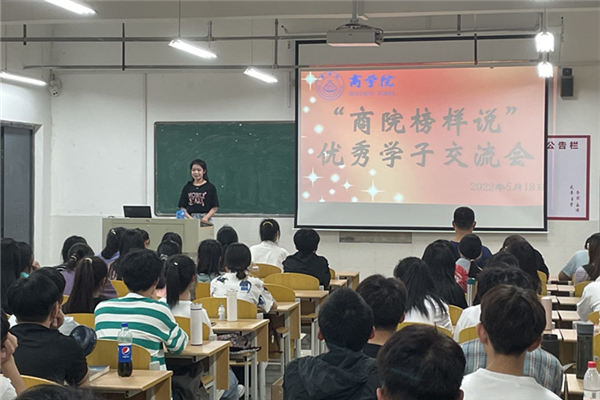 为进一步创新大学生教育学习形式,充分发挥优秀学生榜样引领作用,激发学生自主学习意识,商学院开展了系列活动。5月18日晚,商学院在实训楼B304教室举办了“商院榜样说”优秀学子经验交流会,20财务管理2班郜源、20国际经济与贸易李媛、18会计学1班史乐萍3名优秀学子进行了经验交流,学生事务管理科副科长孙茂顺老师到场指导,商学院2021级各专业学生参加了交流会。