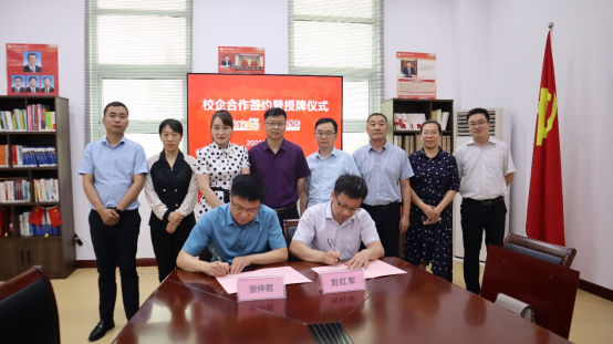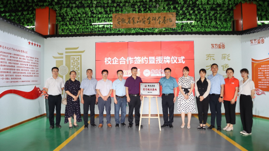 随后,刘红军代表商学院与公司签订了校企企合作协议,王俊代表学校向安徽东方果园生物科技有限公司“宿州学院实习就业基地”授牌。