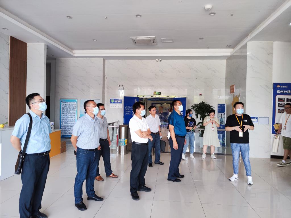 考察组首先来到宿州市瞪羚服务贸易产业园,受到宿州市瞪羚服务贸易产业园董事长于洪国、副总经理张旭、副总经理孙中的热情接待。座谈会上,双方就岗位需求、实习就业、课程开发共建等内容进行了友好交流、深入探讨,达成了初步合作意向。