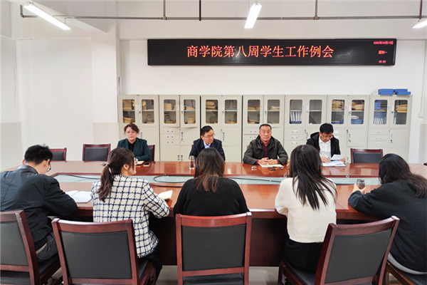 10月17日上午,商学院在实训楼B507会议室召开第八周学生工作例会。商学院党委书记肖良、副院长宁青青、组织员黄凯和全体辅导员(班主任)参加了会议,党委副书记周亚主持会议。