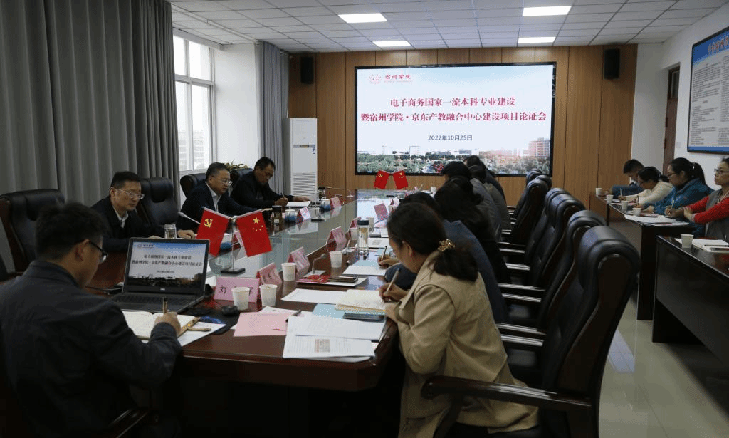 会上,刘红军汇报了电子商务国家级一流本科专业建设点建设方案和宿州学院·京东产教融合中心建设方案。与会人员围绕电子商务国家级一流本科专业建设和宿州学院·京东产教融合中心建设进行了交流研讨。