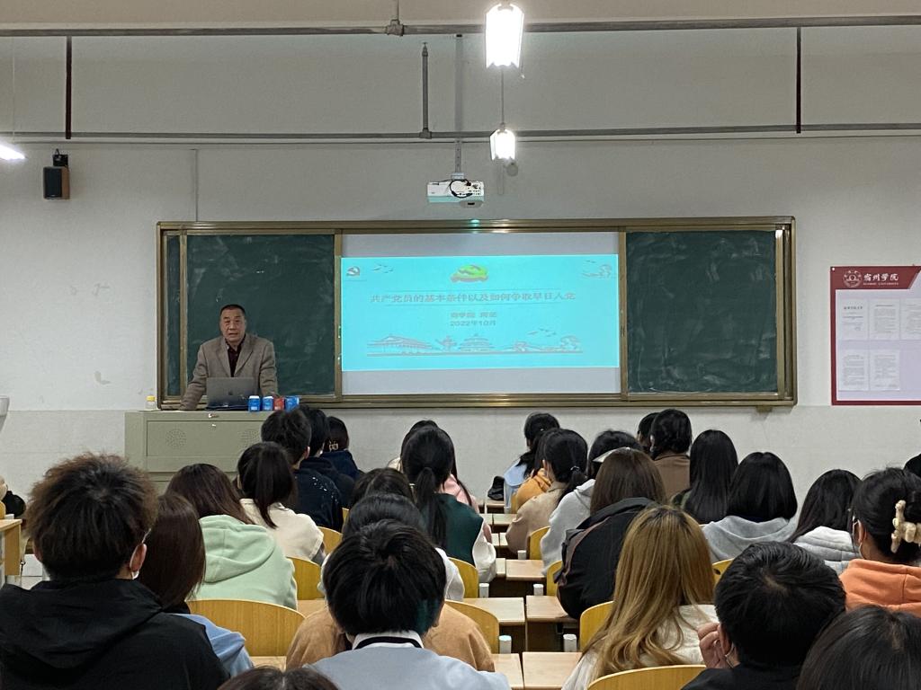 党委副书记、纪委书记周亚以“共产党员的基本条件以及如何争取早日入党”为题,带领全体学员学习了中国共产党的奋斗历程、如何争取早日入党、共产党员的基本条件、党员发展流程,要求学员从点滴做起,认真学习、踏实工作,将党的奋斗目标与个人目标相结合,规范自身言行,为加入中国共产党做好充分的准备。