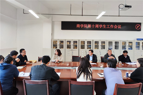 10月31日上午,商学院在实训楼B507会议室召开第十周学生工作例会。商学院党委书记肖良、副院长宁青青、组织员黄凯和全体辅导员(班主任)参加了会议,党委副书记周亚主持会议。