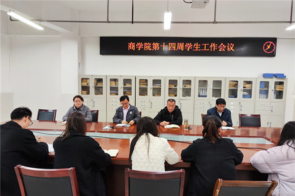 11月28日上午,商学院在实训楼B507会议室召开第十四周学生工作例会。商学院党委书记肖良、副院长宁青青、组织员黄凯和全体辅导员(班主任)参加了会议,党委副书记周亚主持会议。