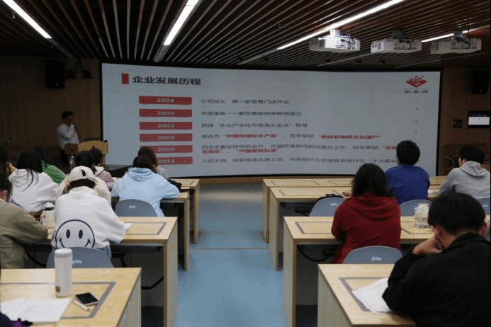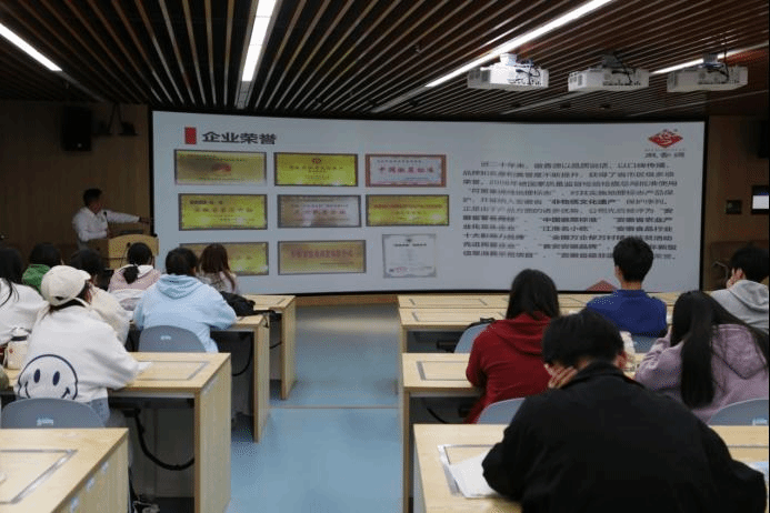聘任仪式结束后,宿州市徽香园食品有限公司生产供应链运营中心总监程迎久等课程组成员,分别从企业发展历程、管理团队、企业营销渠道等多方面上了精彩一课,把生动的企业运营实战经验带进课堂,使同学们受益匪浅。