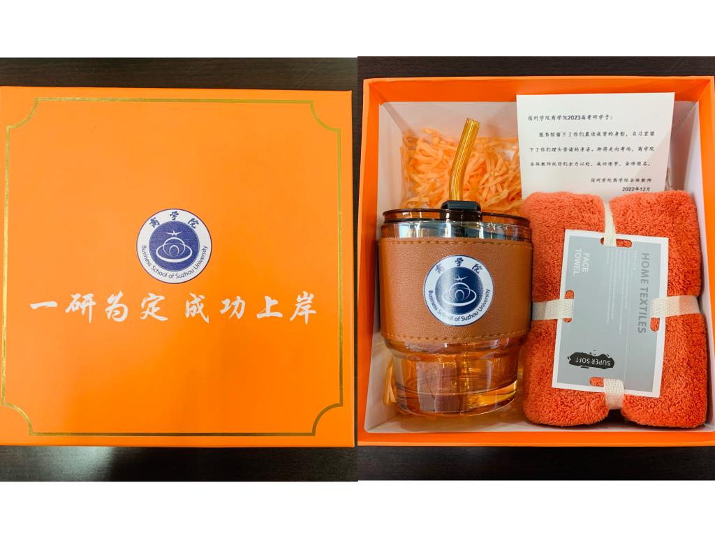 随后,学院将255份提前准备好的“加油礼盒”送到每位考生手中。礼盒中印有“一研为定、成功上岸”的祝福语,礼盒里装有印有商学院院徽的纪念品,以及来自商学院全体老师的考研寄语卡片。“图书馆留下了你们晨读夜背的身影,自习室留下了你们埋头苦读的身姿”,商学院全体教师祝福考研学子全力以赴,成功逐梦,金榜题名。同学们纷纷表示:“在这个寒冷的冬季,我们收到了学院的考研祝福礼物,真的是太暖心了!”“漫漫研途,我们从来不是孤单一人”