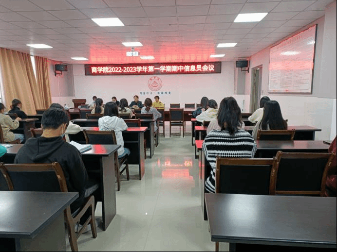 为进一步掌握教学管理动态,充分发挥学生参与教学管理的主体作用,确保教学质量监控和信息反馈,按照校、院相关文件精神及工作计划安排,商学院于10月19日下午在实训楼B517会议室召开2022-2023学年第一学期期中教学信息员工作会议。学院教学督导教徐旭、教学秘书王红艳、教务员贾晓霞及商学院全体教学信息员参加会议,会议由教学副院长宁青青主持。