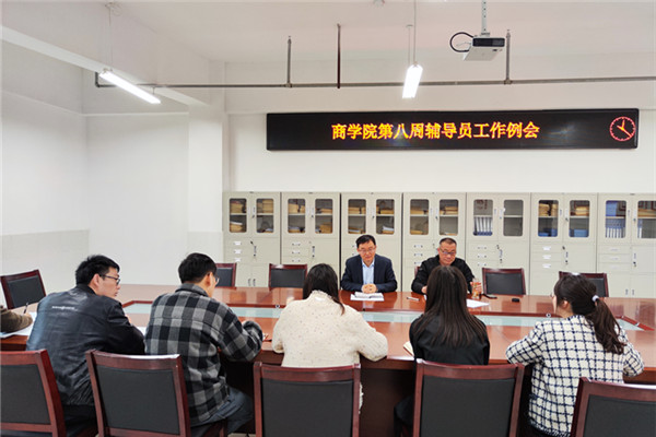 4月3日上午,商学院在实训楼B507会议室召开第八周辅导员工作例会。商学院党委书记肖良和全体辅导员(班主任)参加了会议,党委副书记周亚主持会议。