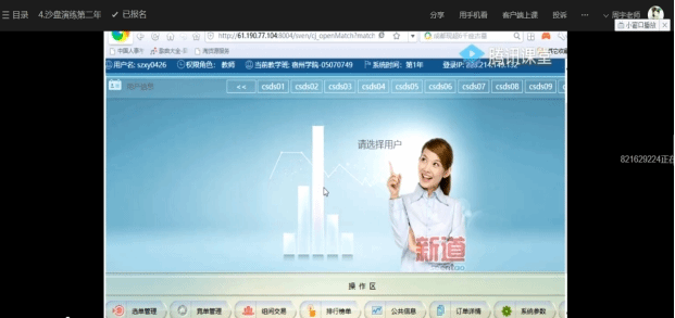 为深入推进我校课程思政建设,发挥课程思政示范项目的引领作用,11月18日,商学院电子商务专业教师周宇结合校级课程思政示范课建设项目,利用腾讯课堂向商学院学生开展了《ERP沙盘模拟实训》课程思政示范课程公开课线上展示活动,商学院同行教师进行了线上观摩。