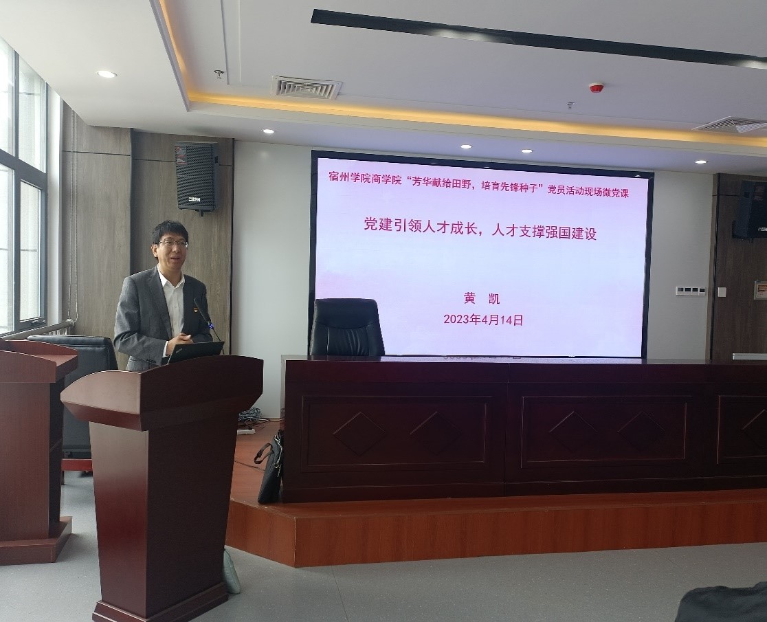 活动第四项,商学院正处级组织员黄凯用一堂《党建引领人才成长,人才支撑强国建设》浸润式微党课,带领参加人员从党管人才、科技、教育,三农论述,脱贫攻坚,乡村振兴漫谈到新型城镇化,种子论述,粮食论述,中国式现代化,新发展理念,还原我国农业科技发展历程,深刻认识了以农业科技自立自强支撑引领农业强国建设的重大意义,切实感受了伟大建党精神和新时代农科精神,鼓励党员自觉增强做中国人的志气骨气底气,号召学生党员将个人理想信念的种子种在祖国大地上,坚决学习宿州市农科院忠诚干净担当、深耕农业沃土、矢志种业发展的先进榜样,在强国建设、民族复兴的大道上,深刻把握“两个确立”的决定性意义,不断增强“四个意识”、坚定“四个自信”,做到“两个维护”,充分发挥好基层党支部战斗堡垒作用和党员先锋模范作用,把习近平新时代中国特色社会主义思想和党的二十大精神学习好宣传好贯彻好,不忘记昨天,把握好今天,创造好明天!