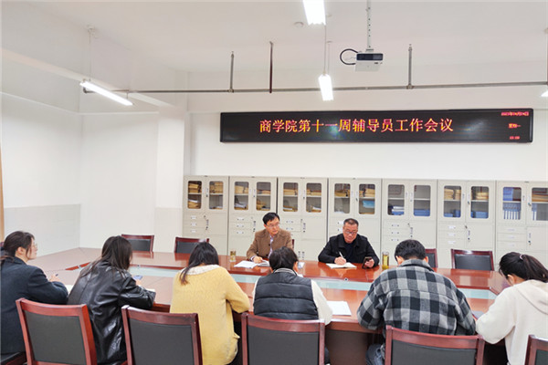 4月24日上午,商学院在实训楼B507会议室召开第十一周辅导员工作例会。商学院党委书记肖良和全体辅导员(班主任)参加了会议,党委副书记周亚主持会议。