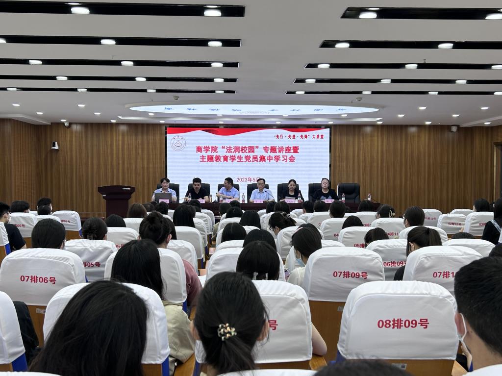 为进一步推动学习贯彻习近平新时代中国特色社会主义思想主题教育走深走实,5月19日下午,商学院联合民革宿州市委员会在商学院实训楼一楼报告厅举办了题为“法润校园,与法同行”专题讲座暨主题教育大学生党员集中学习会。商学院党委书记肖良出席活动并讲话。民革宿州市委员会专职副主委、宿州市政协委员刘玉长同志代表民革宿州市委员会出席活动并致辞。