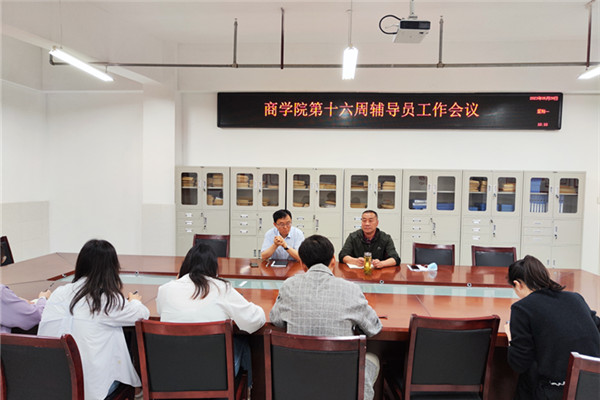 5月29日上午,商学院在实训楼B507会议室召开第十六周辅导员工作例会。商学院党委书记肖良和全体辅导员(班主任)参加了会议,党委副书记周亚主持会议。