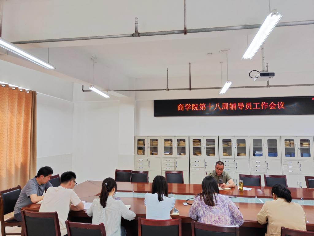 6月12日上午,商学院在实训楼B507会议室召开第十八周辅导员工作例会。商学院党委副书记周亚和全体辅导员(班主任)参加了会议。