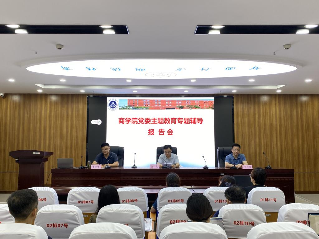 6月29日下午,商学院在实训楼B117报告厅举办主题教育专题辅导报告会。邀请江苏师范大学马克思主义学院博士生导师、江苏省高校思政课教指委“习近平新时代中国特色社会主义思想概论”课分教指委委员贾彦峰教授作专题辅导报告。商学院领导班子及全体教职工参加报告会,党委书记肖良主持会议。