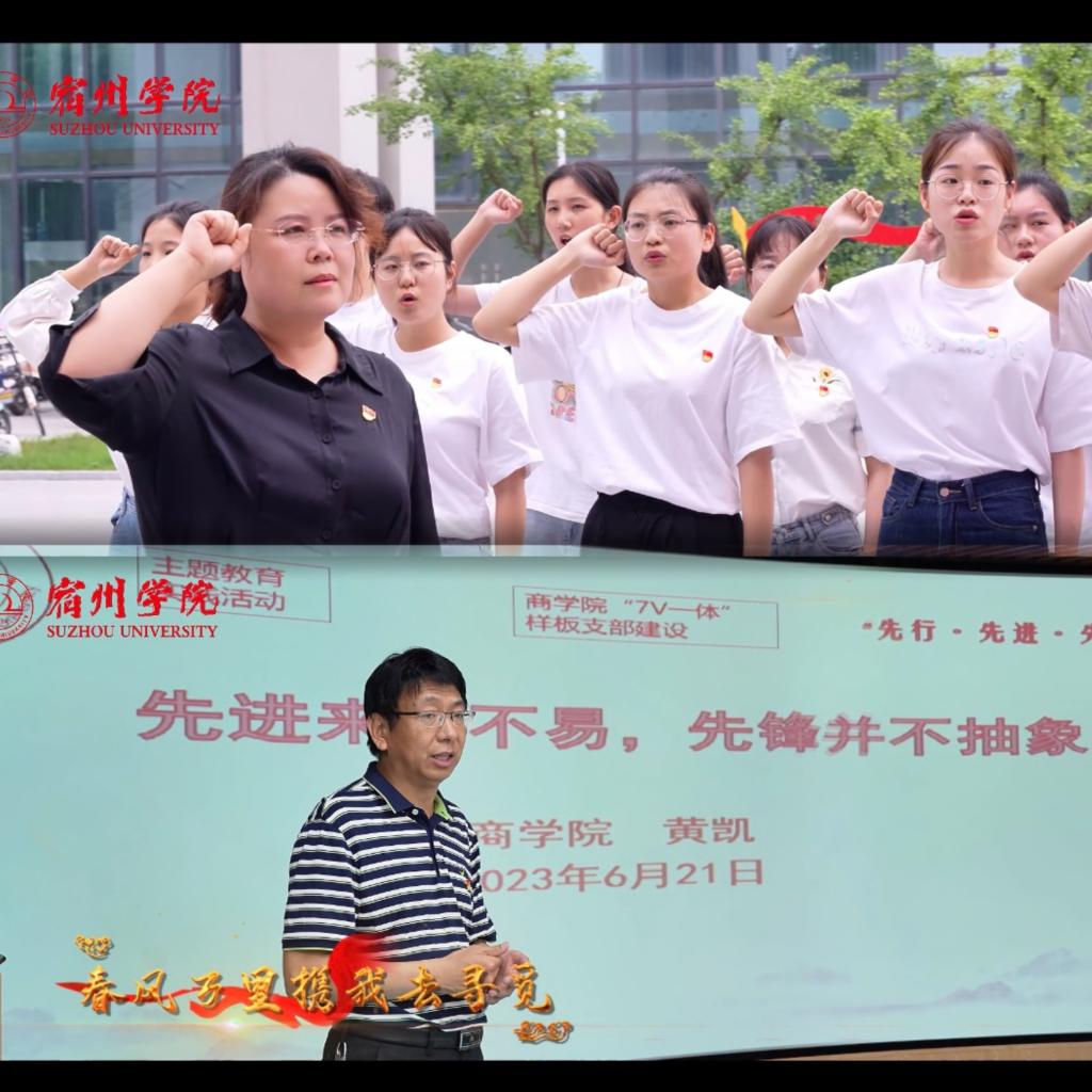 《春的旋律》从创意、作词、演唱、制作等均由商学院师生自主完成。歌曲颂扬了伟大的建党精神,展现了新时代党的自信自强、踔厉奋发的精神风貌,词曲包含激情,涤荡人心。在MV 制作过程中,学校党委组织部、宣传部,校团委精心指导,商学院各党支部书记、教师以及广大学生党员、团员积极参与,结合主题教育的学习和收获,把学习的成果展现出来,呈现了宿州学院师生参与主题教育的热情和精神状态。