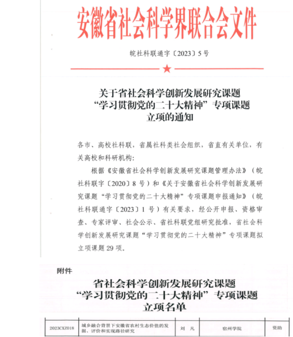 近日,安徽省社科联发布了“2022年度安徽省社会科学创新发展研究课题立项的通知”,商学院教师3项课题获得立项。