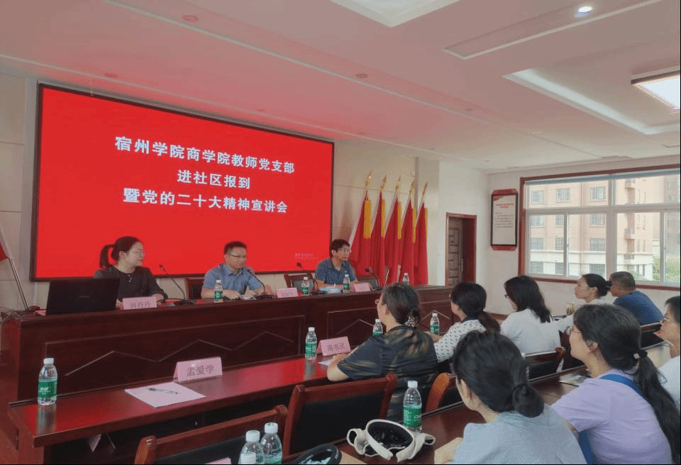首先,西关街道振兴社区何丹丹部长详细介绍了社区的基本情况和工作的重点;刘红军介绍了宿州学院及商学院的基本情况和教学科研、服务地方及党建工作开展情况,并希望今后能加强与社区党组织的联系,共同推进党建育人功能新发展。随后,黄凯做了题为“沿着党的二十大指引的前进方向砥砺奋斗”的党的二十大精神宣讲,他以浅显易懂的语言、喜闻乐见的形式向现场党员干部宣讲,让党课接地气,让居民记得住,引导大家在学习党的二十大精神中传承红色基因,汲取奋进力量,把学习成果转化为奋进新征程、建功新时代的实际行动。