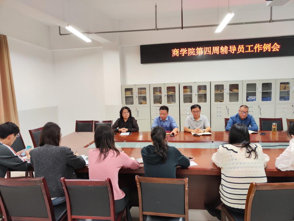 9月25日上午,商学院在实训楼B507会议室召开第四周辅导员工作例会。商学院党委书记肖良,党委副书记、院长刘红军,副院长(教学)宁青青和全体辅导员参加了会议,党委副书记周亚主持会议。