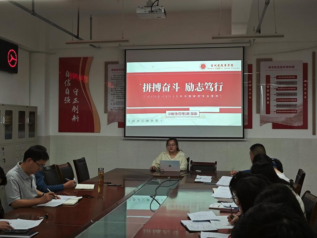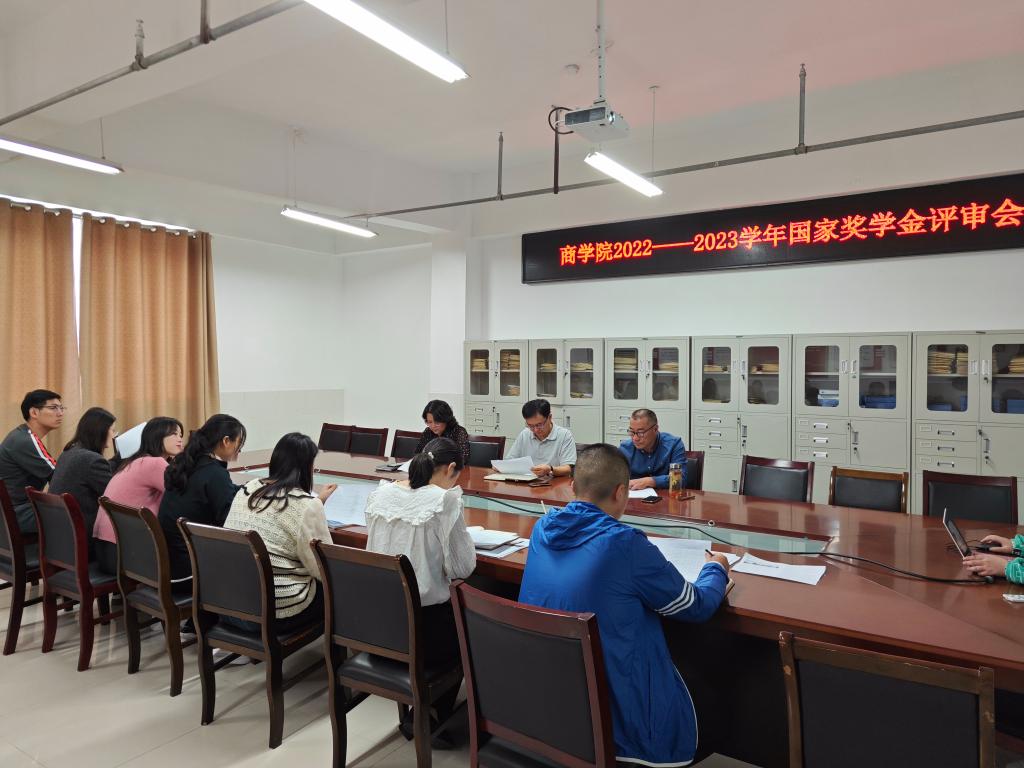 9月25日,商学院在实训楼B507会议室召开了2023年国家奖学金领导小组评审会议。会议由商学院党委副书记周亚主持,党委书记肖良,副院长(教学)宁青青和全体辅导员以及各专业国家奖学金11名候选学生参加了会议。
