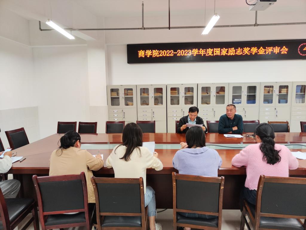 10月10日下午,商学院在实训楼B507会议室召开2022-2023学年度国家励志奖学金评审会。会议由党委副书记周亚主持,党委书记肖良和各年级辅导员参加了评审会。
