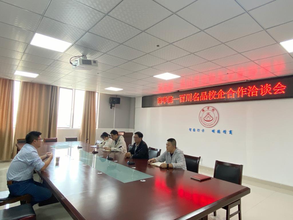 10月18日上午,百川名品供应链股份有限公司人事主管陈辉来商学院推动校企合作交流,商学院党委书记肖良、学生事务管理科副科长孙茂顺、毕业班辅导员王晓波和刘文佳参加了座谈,双方就今后的合作进行了深入交流探讨。